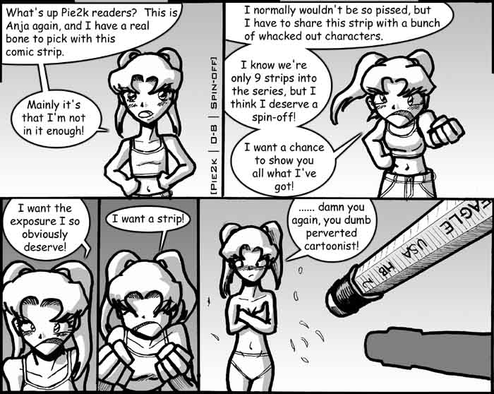 I must admit that I really like these "Anja talking into virtual camera" strips.... They're fun to draw.. there's no worry on backgrounds, and the 50% / 75% greyscale thing works great.