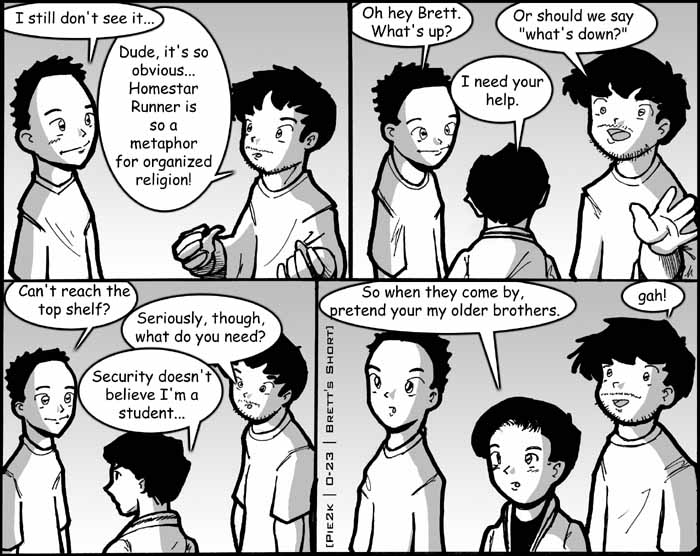 Yeah, this strip has been a long time in coming... Brett is the president of the Sci-Fi Club here at Ramapo College, so it was inevitable that he would eventually get made fun of.