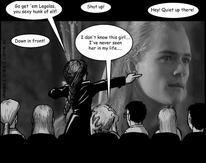 So, yeah, um... LOTR was spectacular and Heather, Kelly, and Sophia have a thing for Legolas... not necessarily the guy who plays him, just Legolas. As far as Kat, I don't remember if she did, but since Heather, Kelly, and Sophia aren't in my comic, she'll have to stand in.