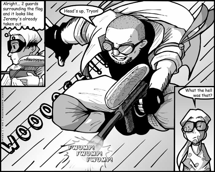 Well, it's 1:00 AM. I should have had this up an hour ago. Oh well. Ian and Matt at MacHall still have not updated their Monday comic, so I don't feel so bad. (Also, I went randomly perusing the Keenspot comics... I don't feel so bad about my content either now... for every RealLife, RPGWorld, and Avalon, there are like 5 terrible comics where you get the feeling the author isn't trying at all) I will not name names for the bad comics, but I will name one name. Mike Rosenzwieg of Everything Jake. While I'm not a big fan of his story-telling style, I find his artwork to be absolutely fantastic. I admire it, and the amount of time and effort he must put into every strip. To use a term from the Tycho Brahe dictionary, it's an eyegasm.