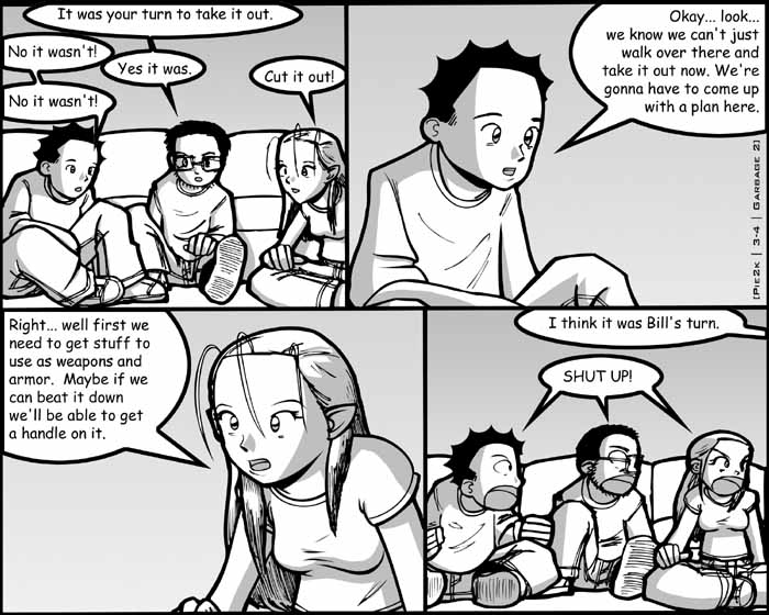 We have tomorrow off for Martin Luther King Jr. Day, so I might get another strip up... or at least I'll get one started. This whole Garbage thread should make it pretty easy to come up with a few strips without much ingenuity at all. :) Go laziness.