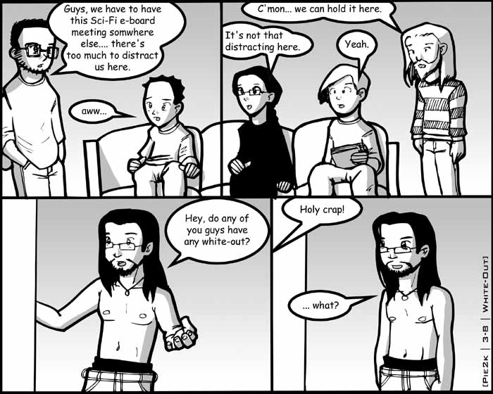 A big welcome to the strip for both Jeff and Marshall... and an appology to Marshall since I drew him pretty damn poorly. I also drew him with his old-style beard... which he had to shave for the sake of safer dentistry. He seems to be growing it back, though, so this comic will be accurate again in a year or so.