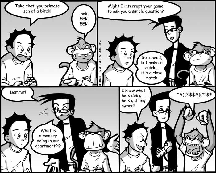 Well, I guess the big irony for this week is that when I have the time to do 2 Pie2k's a week, that means that I have nothing else really going on in my social life, and therefore don't have much to draw or rant about. I seriously need to start keeping a notepad around so that I can write down any ideas I have about strips during the semester so that I can actually draw them during the summer.