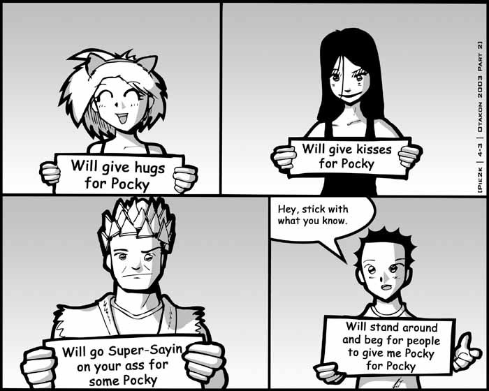 So there's been some increased activity on the site recently, and it's not just the Otakon photos (today's statistics haven't been updated yet). I think it's because Bill was a busy body making friends at MacHall and all over the con and telling them about Pie2k. Next year, I should have a bunch of shirts made up to sell, that'd kick ass. Of course, having buyers would kick ass, also.