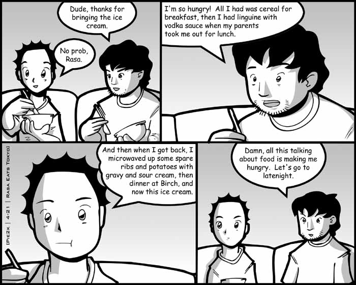 I know I haven't been updating much since I returned to Jackson, but I'm gonna try to pick up the pace at least a little bit. I think Beth and Rasa pinpointed why I haven't been updating recently: without being surrounded by my friends I don't have the constant influx of antecdotes to put up. I think that's part of it, but I've been known to dig up old stories in the past (especially over winter and summer vactions), so I think it's also that without being surrounded by friends who offer warm words of encouragement, I feel less compelled to put something up. I think I came to that conclusion at dinner while visitng Ramapo recently and a couple of people gave me compliments on the recent Pie2k posting. Although I often feel embarassed when someone gives me a compliment in public like that, but it also reminds me that there are people reading this and they actually enjoy it. I find that a very compelling thought.