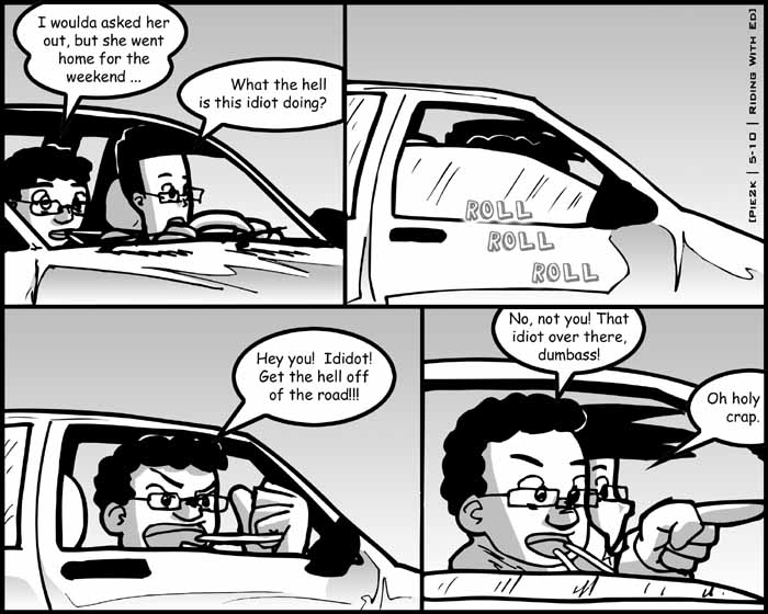 It looks like Ed is becoming a very regular character in Pie2k (or at least as regular as anyone could be in a comic so infrequently updated). For anyone else whom I've known for a long time that would be jealous, keep in mind that Ed's showing up a lot because he's fucking crazy. I say that in the most loving way.