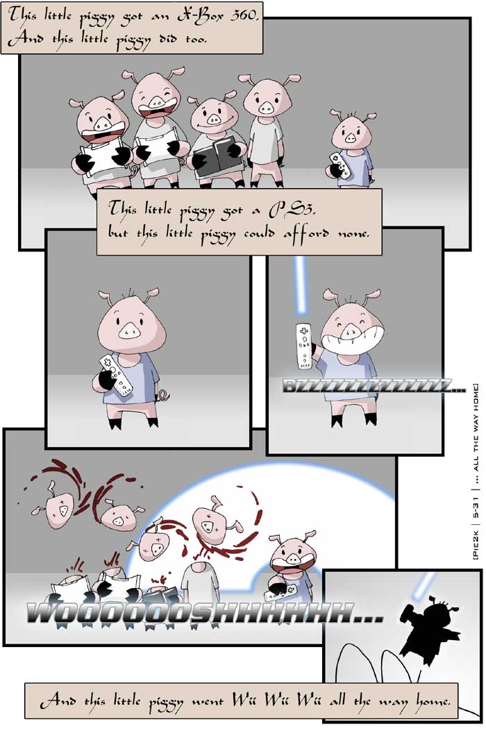 Let's face it everyone... Nintendo just flat out wins at E3 this year. Microsoft had a good showing with alot of new games, but nothing new or surprising. Sony announced pretty much nothing that didn't elicit a big "yawn" save for the outrageous price ($500 core, $600 premium). Nothing on the PS3 looked all that revolutionary, but some things (like Quantic Dream's Heavy Rain demo) showed an excellent level of refinement. Overall, though, they just seem to be showing the same old stuff, but prettier and in HD.