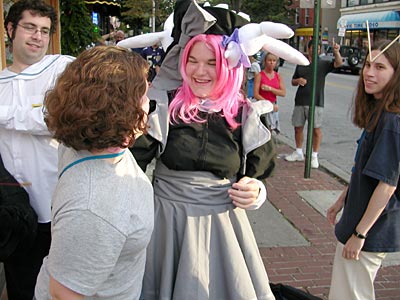 Helena dressed as Misha from Pita-Ten, or so Jon tells me. Seriously, I watch so little anime compared to everyone else at these cons. You could dress any way you want and convince me that it's some sort of anime character. "My T-Shirt is blue, and I have black pants! I'm Blah from Ichi Monkey Koradoran!" Me:"Cool! Let me get your picture!"