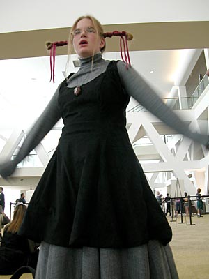Helena was dressed as Witch Hunter Robin that day. Definitely the best Robin costume at the con, if for no other reason than because she used materials that look right for the costume.