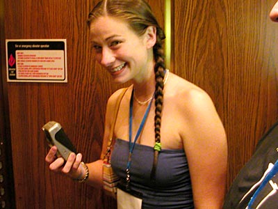 Here's Kelly in the elevator on Saturday morning. That's a transition, I guess. Next Picture!