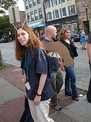 Now here's a character I do know. Kimberly's Trogdor costume was made at the con out of a pizza box and a pair of chopsticks. And everybody knew who she was, it was quite cool.