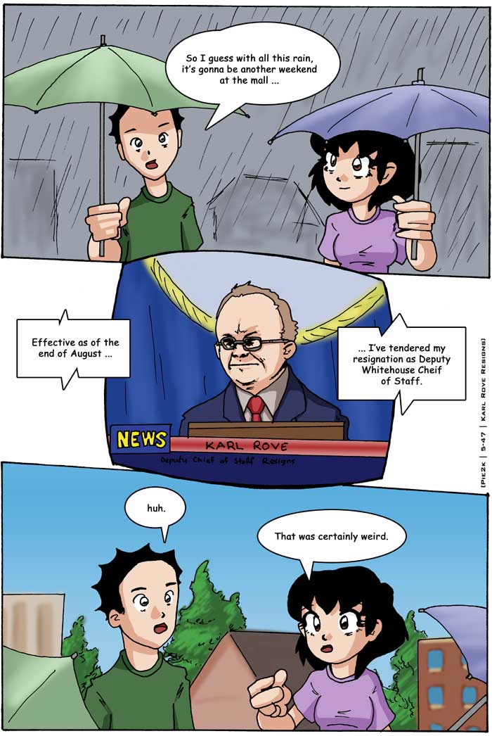 It's been about 7½ months since my last update and well, that's that. I know that the normal thing here would be to say that I'm gonna try to get back in a schedule and promise more updates but I've slipped in the schedule enough times to know that slipping is ridiculously easy, and coming back after a long absence can be hard. So instead of dreaming up some grand sweeping goal, I think right now i'm gonna concentrate on writing this, playing some Metroid Prime 3, and then trying to come up with another strip to put up after this one.