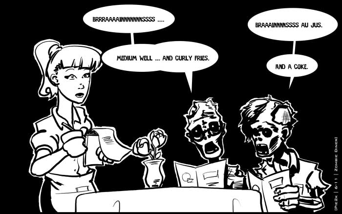 A quickie tonight. One of the forums I frequent has been ragging on CAD a lot recently thanks to its recycled artwork and annoying habit of explaining punchlines beyond the point of them being funny. In light of that, and knowing that I've drawn things out too long in the past, I'm trying to make an effort to do some more direct strips. Ideally, I'd like to get to the level of succinctness you see in Perry Bible Fellowship, Brevity, or The Far Side. All you ever need in a joke is a setup and a punchline. Comics like Brevity and The Far Side can be so short because they rely heavily on your pre-existing knowledge to provide the setup and they just need to provide the punchline. Mechanically, it's hard to approach that level (and that's why these guys get syndicated), but it certainly won't hurt me to pick up some ideas from them.