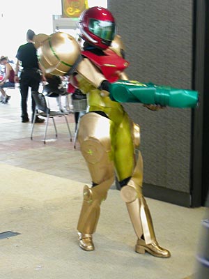 But this costume really took the cake. Some girl dressed as Samus, and it was top-notch quality. She basically made a body suit out of vinyl patchwork and then made armor patches to go on top of it out of either plastic or cardboard, but it didn't look cheap in any way. And then the helmet was a doctored motorcycle hemet... very cool.